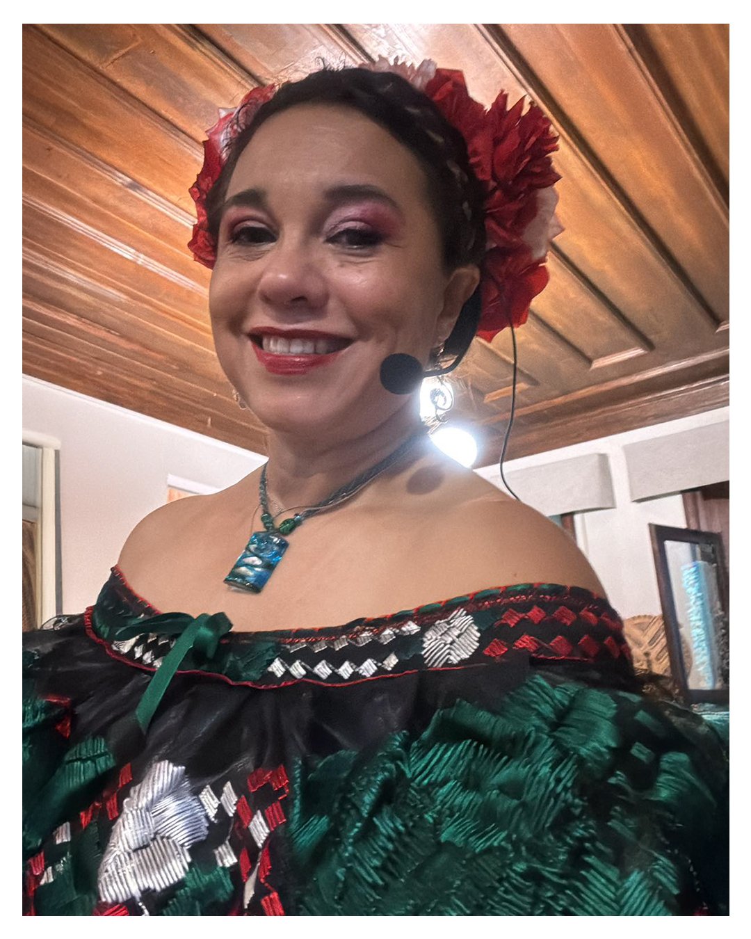 La muestra se enriquece con la interpretación de Gabriela Zamora, mezzosoprano, quien crea un espacio sensorial que conecta la propuesta visual con la emoción musical. La música, como lenguaje universal, transmite la pasión, la historia y la vitalidad de un pueblo lleno de vida.